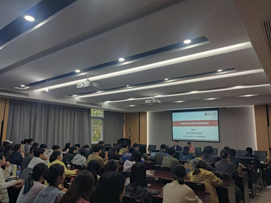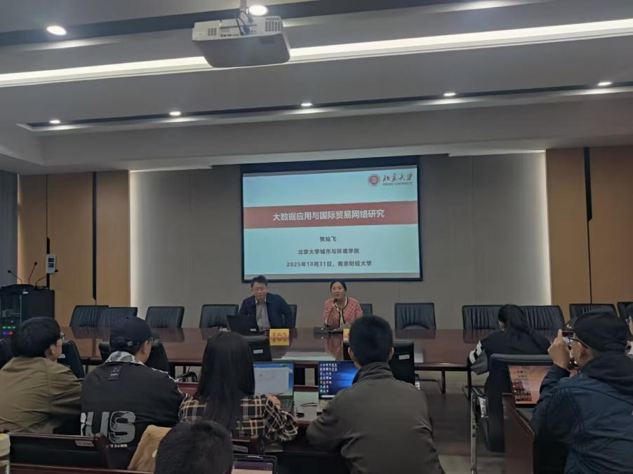 2025年10月31日,北京大学城市与环境学院贺灿飞教授莅临我校名家讲坛,“以大数据应用与国际贸易网络”为主题,深度剖析了大数据应用与国际贸易网络的发展和前景。讲座由国际经贸学院徐圆副院长主持,我校博士研究生和硕士研究生参与。
