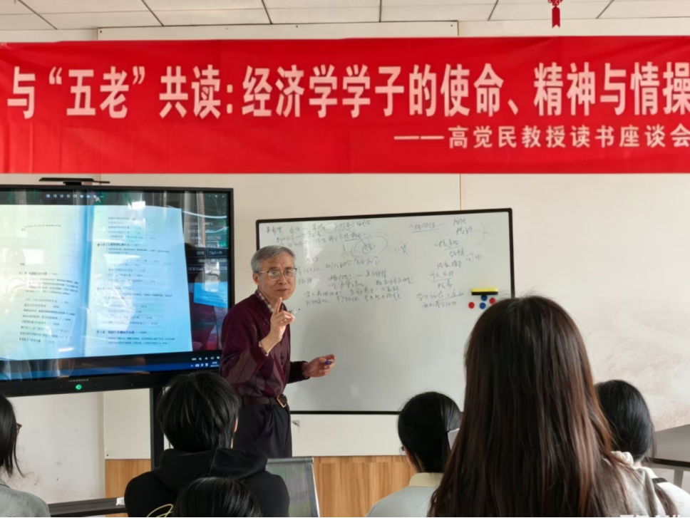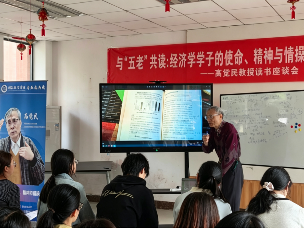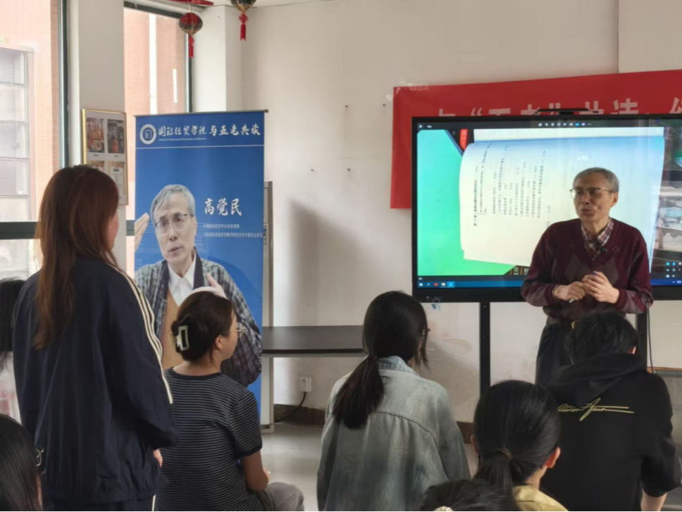 为深化青年学子价值引领,推动经典研读、专业治学与国家安全教育深度融合,厚植家国情怀与安全担当,4月10日下午,国际经贸学院在东苑宿管站举办国家安全主题读书座谈会。活动特邀退休老教授高觉民教授领读讲学,围绕《学者的使命》《贫穷的本质》《人间词话》《学会提问》四部经典展开研讨,引导国贸学子在经典中锤炼思辨、坚守初心,以青春之力维护国家安全。