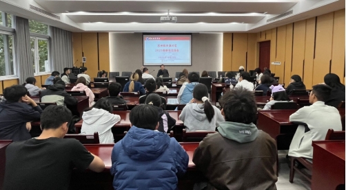 10月20日下午,国际经贸学院在德经楼308会议室召开苏州、天津片区新生座谈会。学院党委副书记周进进出席会议并发表讲话,与片区新生齐聚一堂,共话成长、共绘蓝图。