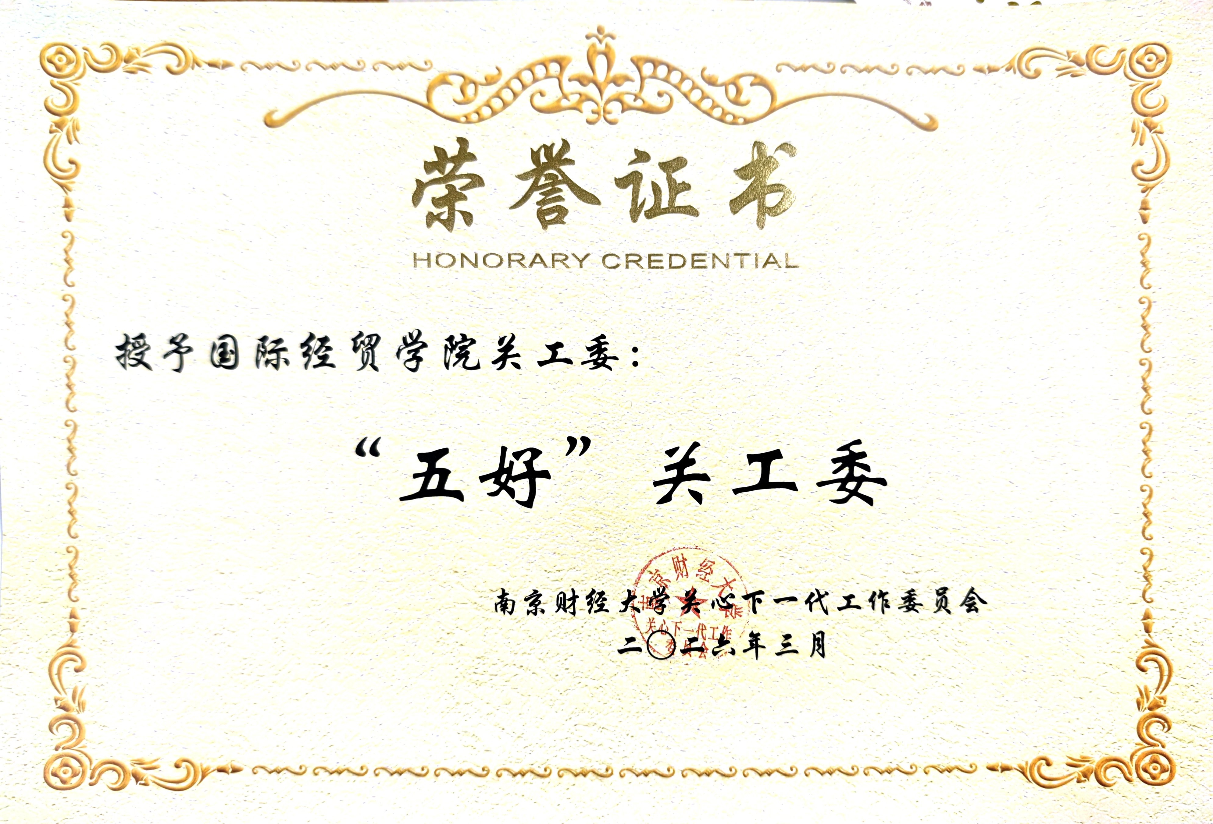 1.学院荣获南京财经大学首批二级学院“五好”关工委(2025年);