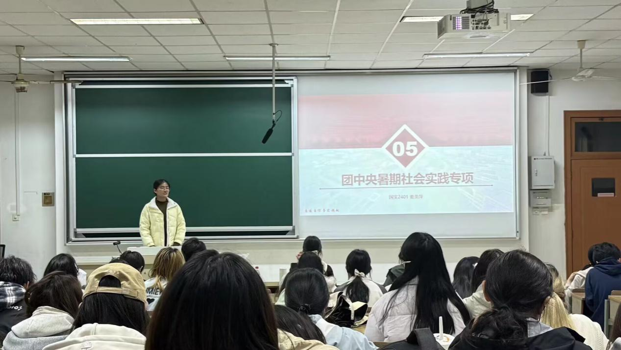 为帮助同学们更好了解暑期社会实践相关要求,理清项目策划、宣传推广的具体方法,提高实践立项和成果转化水平,4月23日晚,南京财经大学国际经贸学院在博远楼208教室开展2026年暑期社会实践宣讲会。本次宣讲会围绕政策讲解、经验交流、专项指导三个方面展开,为即将到来的暑期“三下乡”社会实践打下坚实基础。